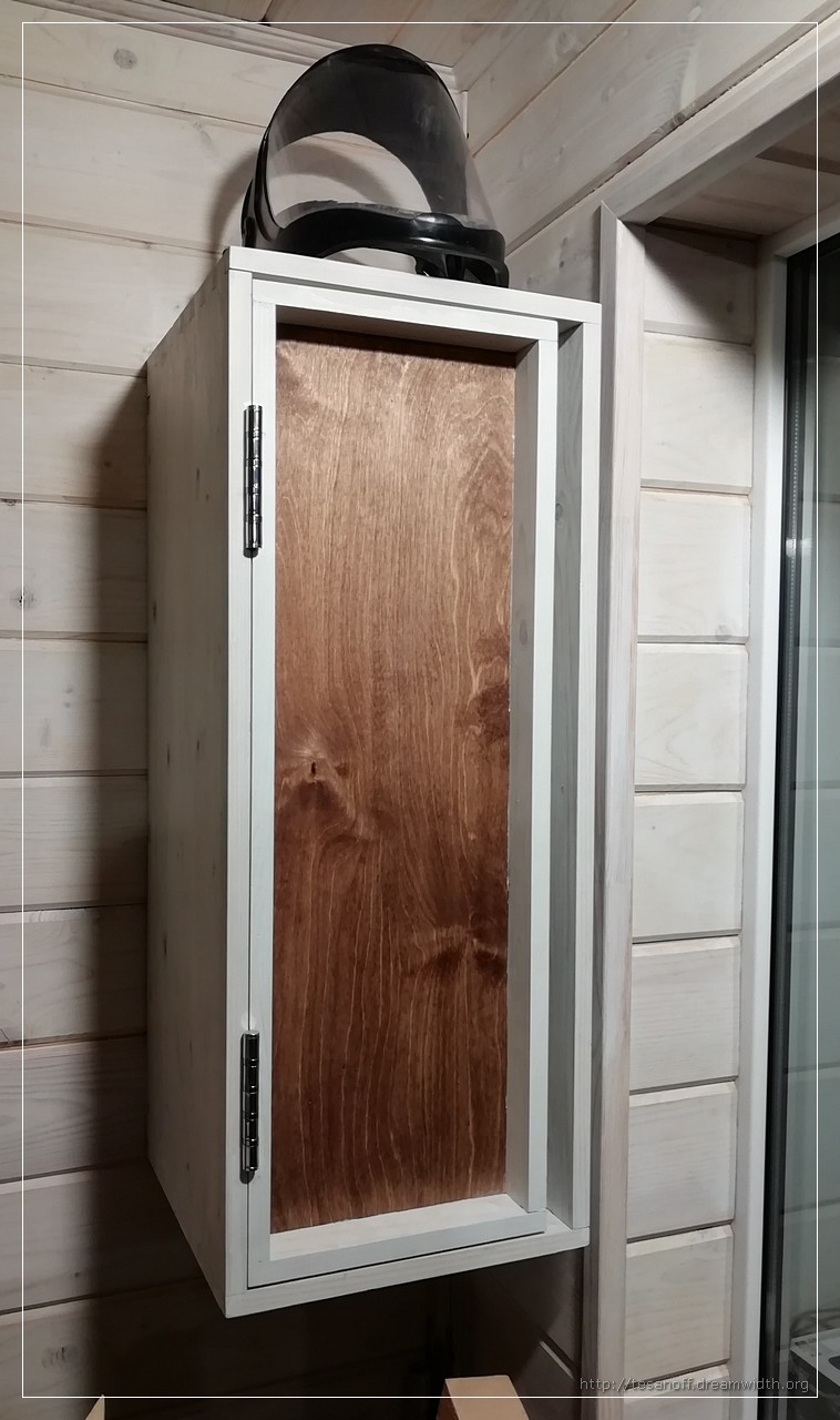 Технологию изготовления самого шкафа и технологию подвешивания считаю отработанной. Осталось сделать ещё один такой маленький шкафчик, и большой шкафчик, который разместится между маленькими.