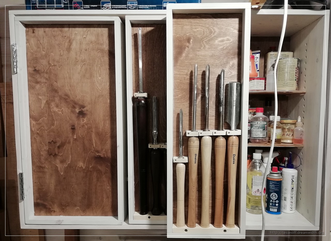 Сегодня я закончил с размещением на дверках шкафчика своих токарных резцов. Оказалось, что у меня их несколько больше, чем я думал. Наверное, такое бывает не только с резцами, но и, например, с объективами у фотографов.